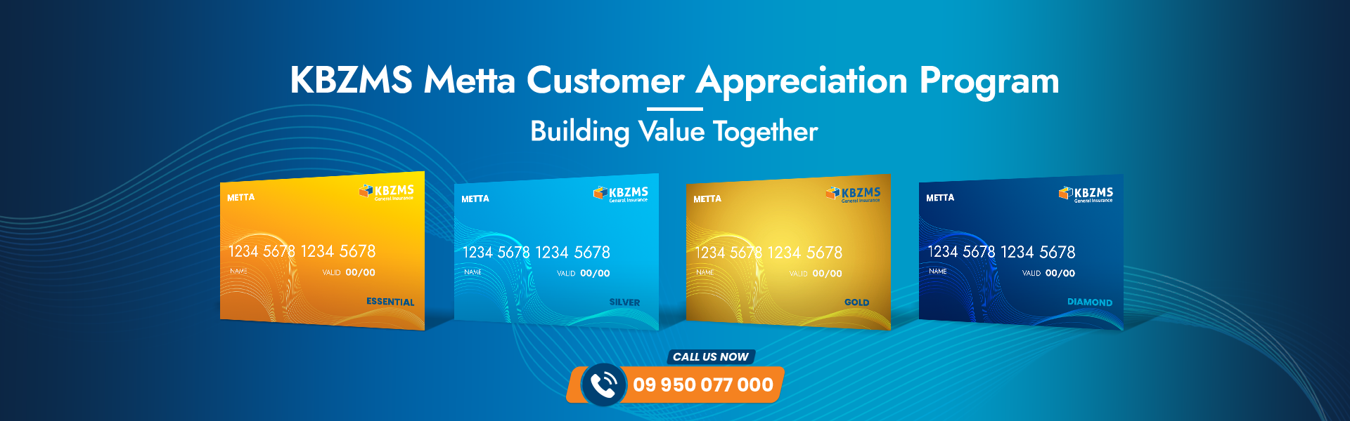 Becoming a part of the KBZMS Metta Customer Appreciation Program is simple! Just continue engaging with us by purchasing our general insurance products, and you’ll automatically be enrolled to start enjoying your benefits. Our KBZMS Call Center at 09 950 077 000 will notify you once you qualify and ensure you receive your membership cards along with all the exclusive perks.