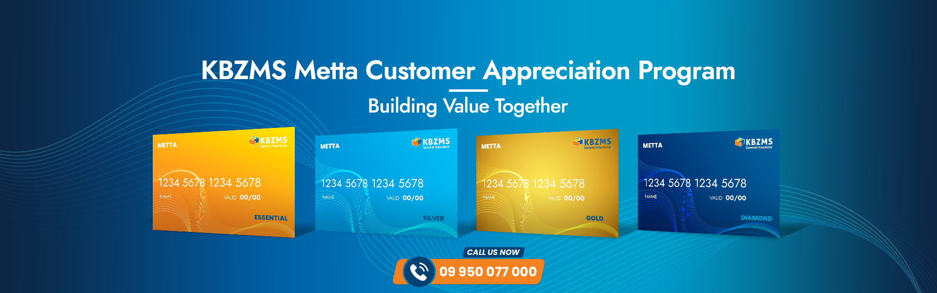 “KBZMS Metta Customer Appreciation Program” တွင် ပါဝင်နိုင်ရန်လွန်စွာလွယ်ကူပါသည်။ ကျွန်ုပ်တို့၏ အာမခံဝန်ဆောင်မှုများကို ယုံကြည်စွာရွေးချယ်ဝယ်ယူသည်နှင့် အကျိုးခံစားခွင့်များကို စတင်ရရှိစေရန်အတွက်အလိုအလျောက် စာရင်းသွင်းပေးသွားမည်ဖြစ်ဖြစ်ပါသည်။ လူကြီးမင်းအနေဖြင့် အာမခံဝန်ဆောင်မှုများကိုဝယ်ယူသည့် ပရီမီယံကြေးသည် သတ်မှတ်ထားသော အကျိုးခံစားခွင့်များတွင် ပါဝင်ပါက KBZMS Call Center မှ